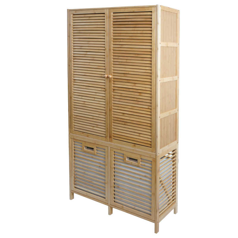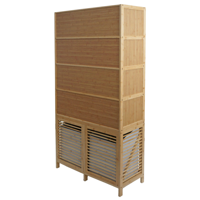 Armoire de salle de bain en bambou HWC-N83, étagère, armoire de rangement, 2 paniersàlinge, 2 portes FSCé 168x82x34cm
