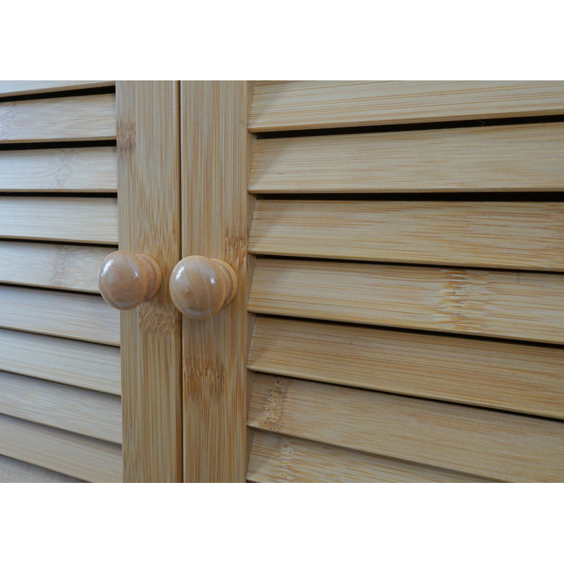 L'aspect naturel du bambou crée une atmosphére chaleureuse, tandis que son aménagement réfléchi assure organisation et confort. L'armoire s'intégre harmonieusement dans n'importe quelle salle de bain et peut étre parfaitement combinée avec d'autres produits en bambou.