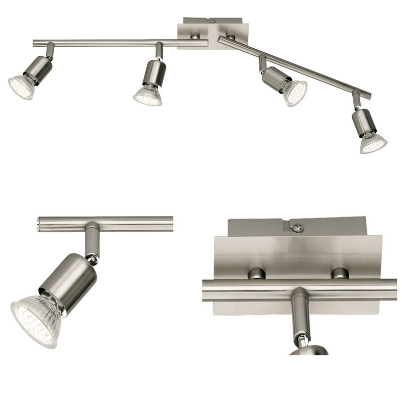 Reality présente, comme filiale de Trio-Leuchten, une haute qualité à bon prix. Ce plafonnier merveilleux impressionne par son design élégant et simple en même temps, c'est pourquoi il est un compagnon bien utilisable pour votre salon, la salle à manger, la chambre ou votre bureau! Les abat-jours inclinables séparément offrent la possibilité d'illuminer directement ou indirectement des détails particuliers et par conséquent de les accentuer. Ce plafonnier est idéale pour réaliser votre conception d'un éclairage parfait qu'attendez-vous?